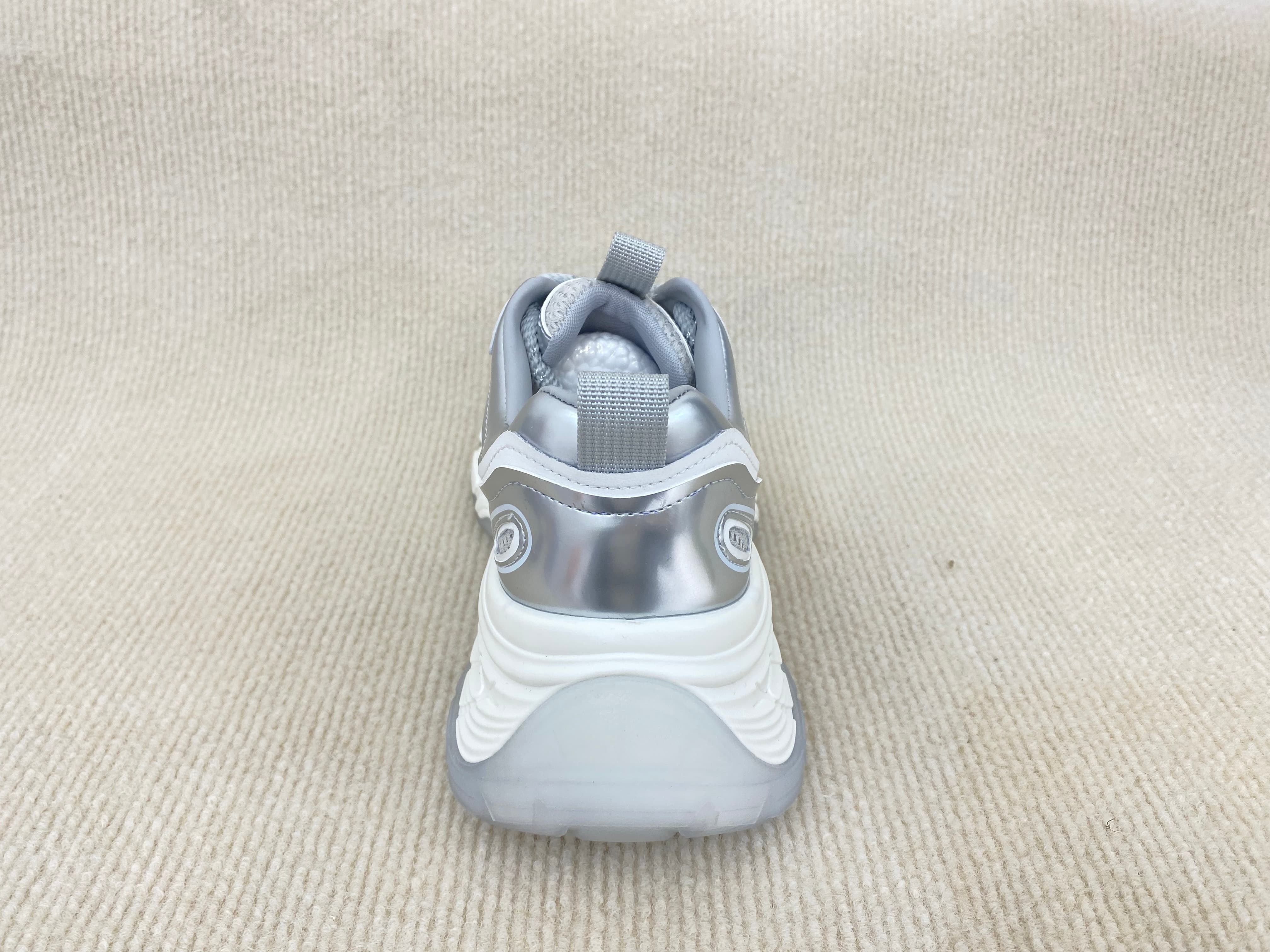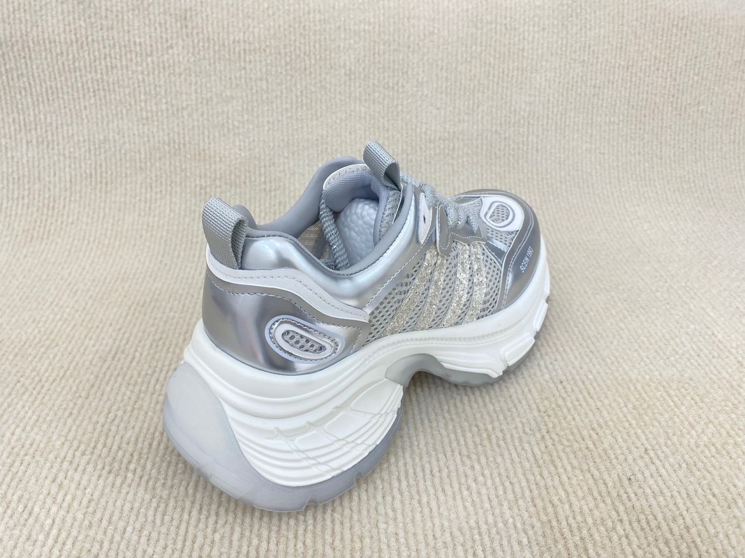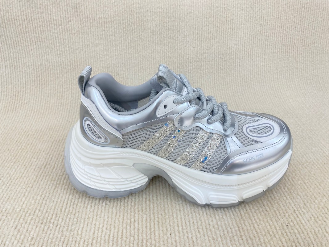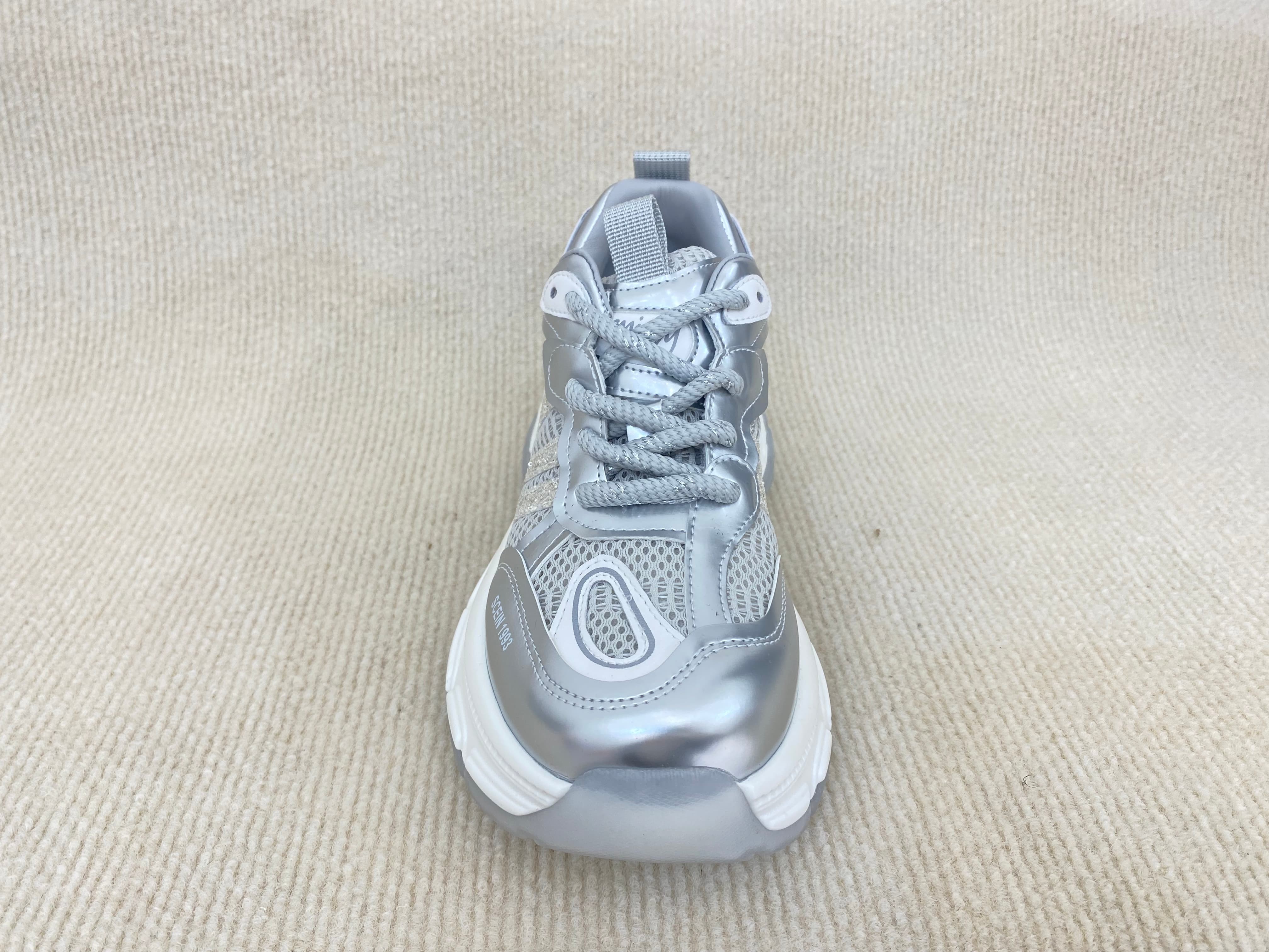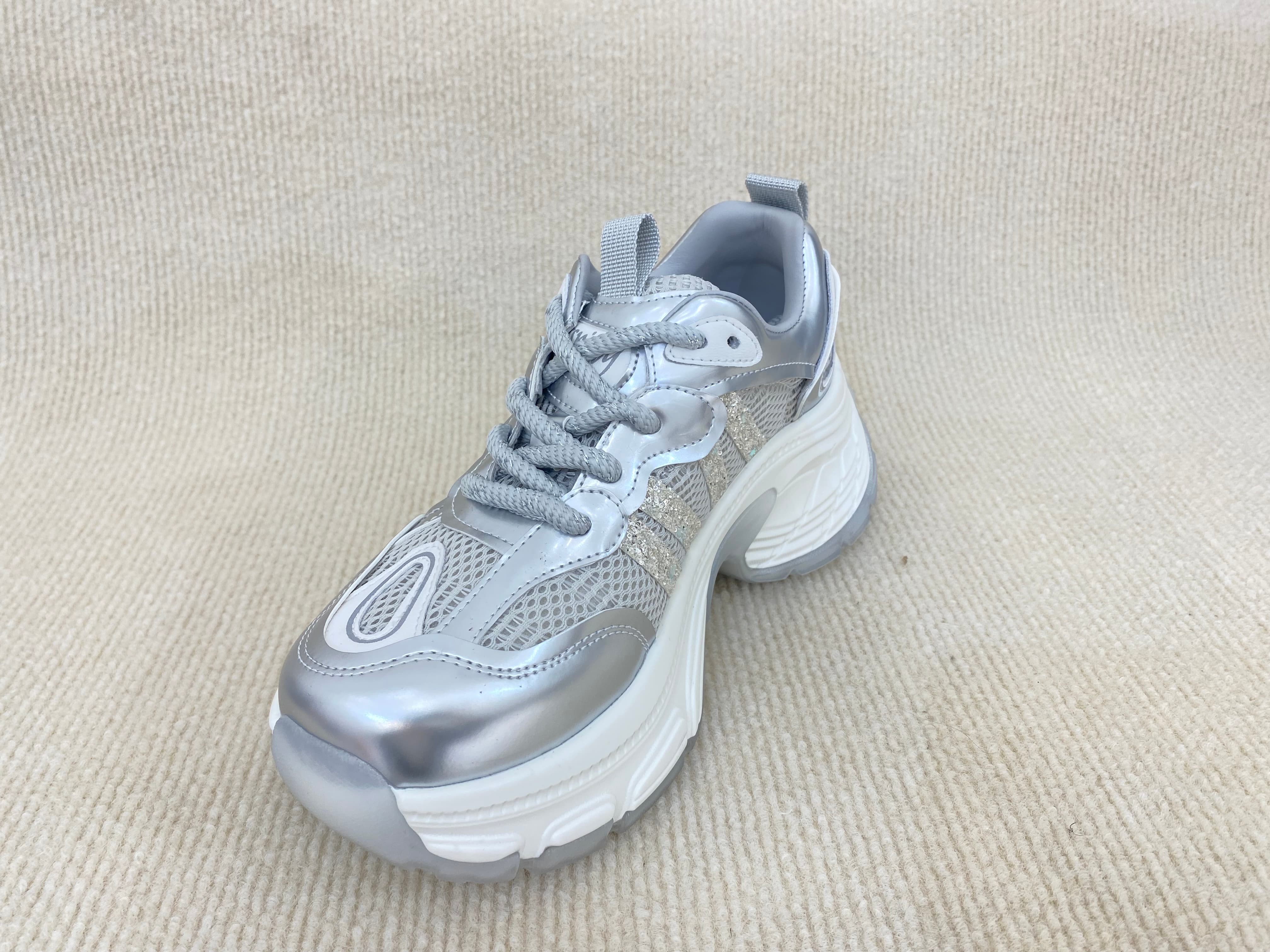 মহিলাদের রূপা স্পোর্টস জুতা ঘন পাতলা এবং শ্বাস প্রশ্বাসের জাল উপরের খাঁটি চামড়া সঙ্গে
